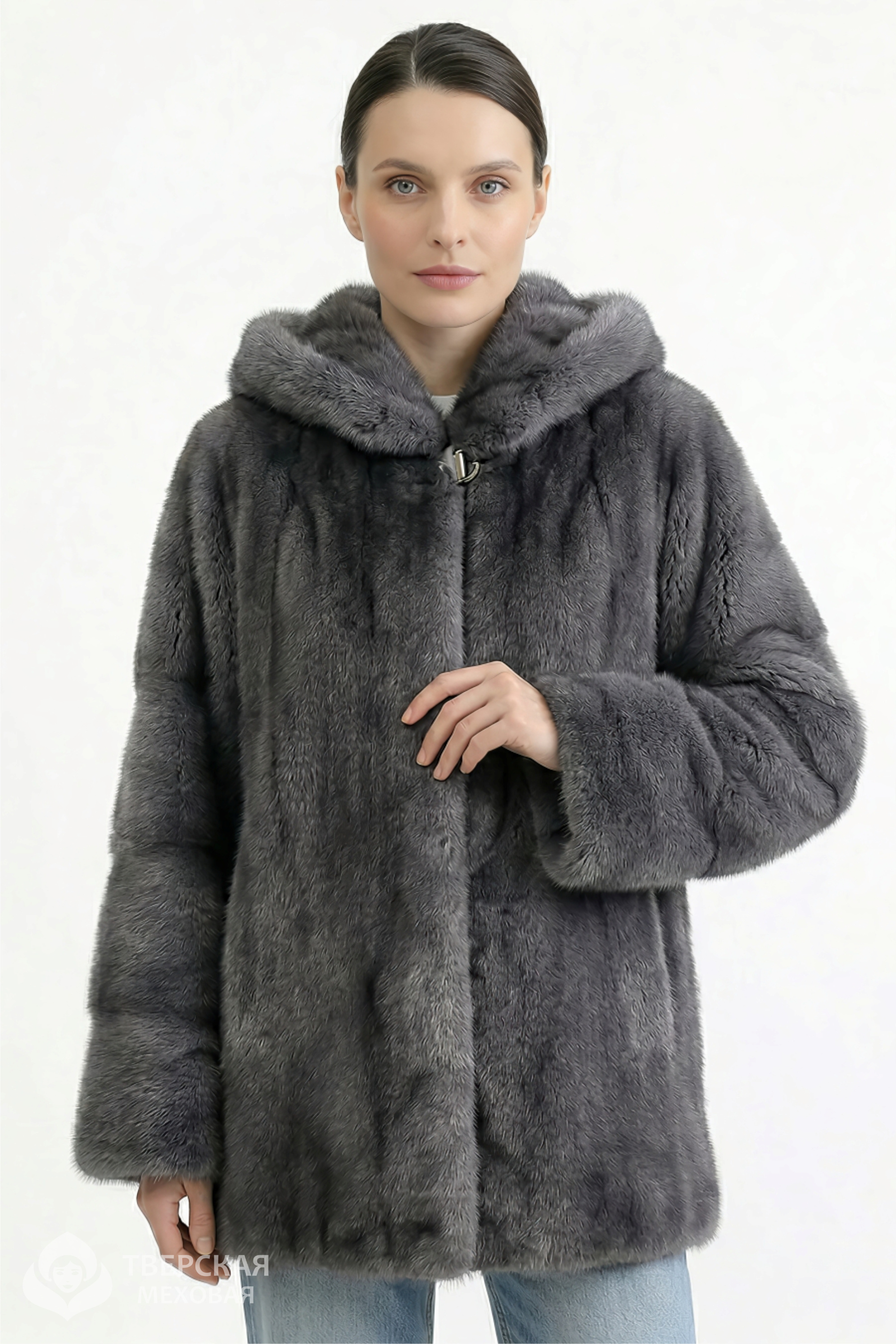 Норковая шуба «Снежанна» капюшон серый цвета серый